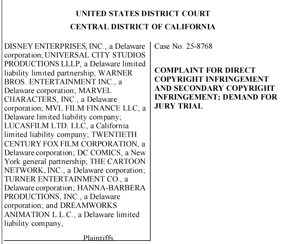 这并非好莱坞巨头首次与AI平台交锋。6月,迪士尼和环球已联手起诉Midjourney;本月早些时候,华纳兄弟也单独提起诉讼。三起案件均由同一律师团队代理,起诉思路大体类似。(详见:《好莱坞和AI持续火拼:华纳起诉Midjourney盗用蝙蝠侠》)