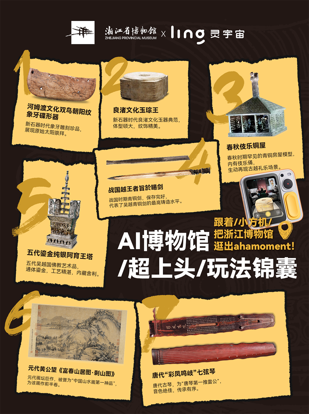 在国庆节期间与浙江省博物馆携手打造的“国宝动起来,心意带回家”主题文化活动中,灵宇宙小方机化身“数字讲解员+互动体验官”进驻浙博展厅,打破传统博物馆“看展如看说明书”的静态模式,将厚重的历史知识以生动有趣的方式呈现,真正实现“国宝动起来”的互动观展体验。